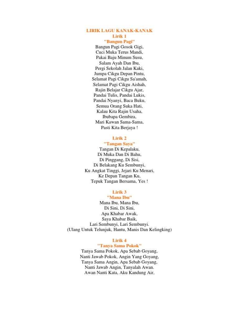 Lirik Lagu Kanak Kanak Bahasa Melayu Nashcxt